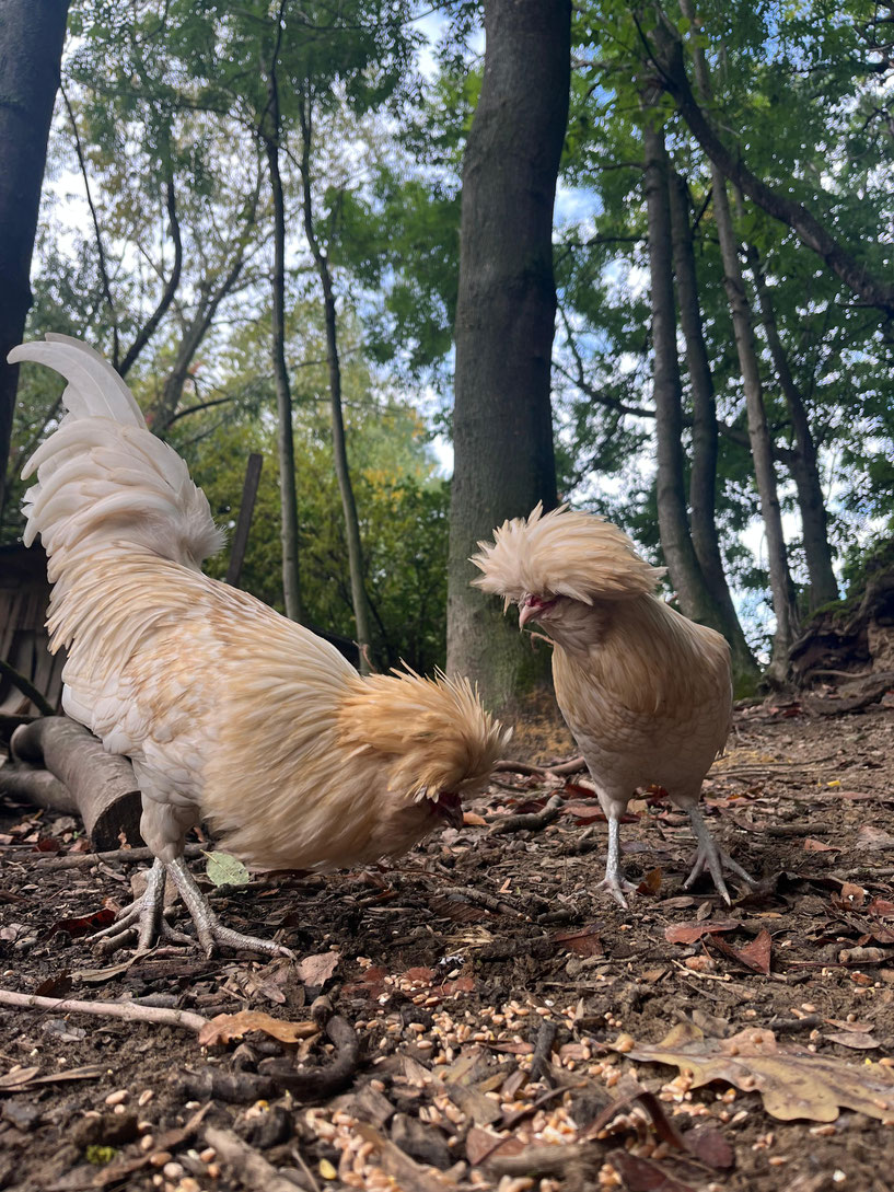 Unser Lebenshof ist ja bekanntlich ein echter Magnet für besondere Tierpersönlichkeiten — aber unsere zwei Neuzugänge schießen den sprichwörtlichen Vogel ab: Don Camillo und Peppone, zwei Zwergpaduaner-Hähne, haben mit ihrem extravaganten Federkleid sofort alle Blicke auf sich gezogen.